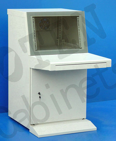 (1) 标准规格单柜,组合式结构,便于运输。 (2) 上部可安装17"显示器,下部柜体内可安装19"标准控制电脑设备 (3) 转角柜有30度或45度可供选择。 (4) 全烟灰色玻璃屏,整体组合后美观漂亮。 (5) 台面板有钢板式或木制可供选择。